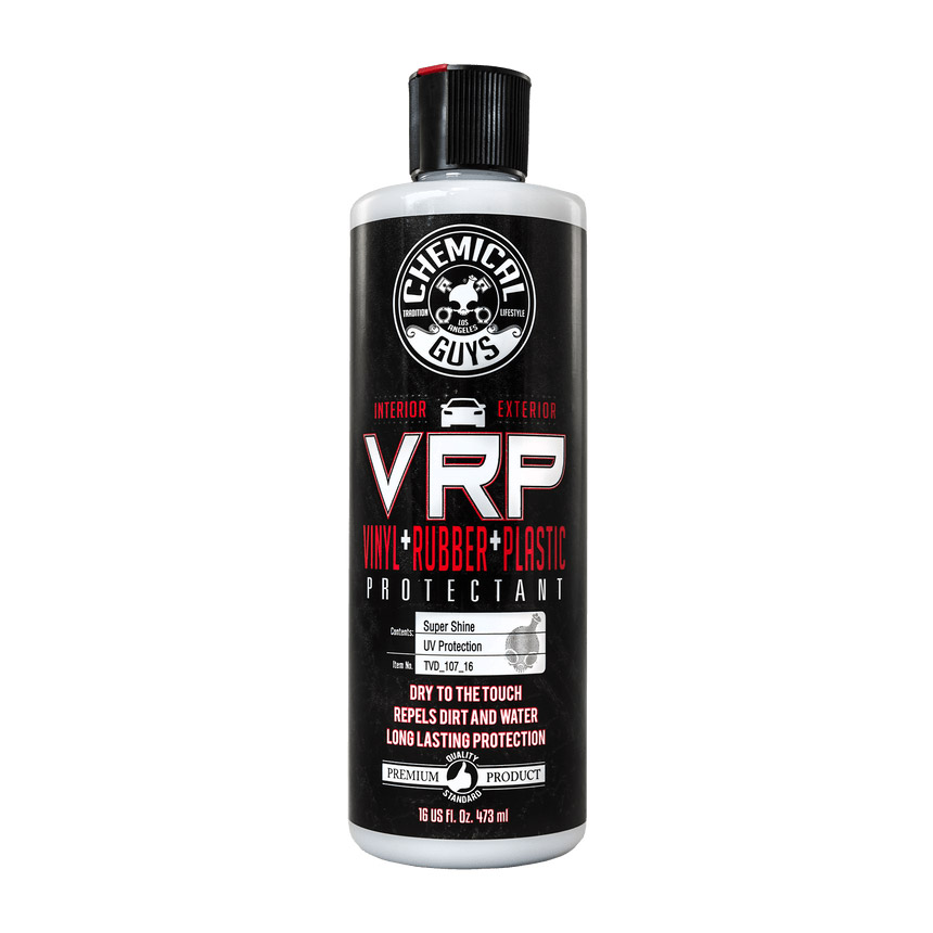 Chemical Guys VRP premaz za plastiku, gumu i vinil obnavlja boju, štiti od UV zračenja i ostavlja prirodan, nemastan finiš na svim površinama.